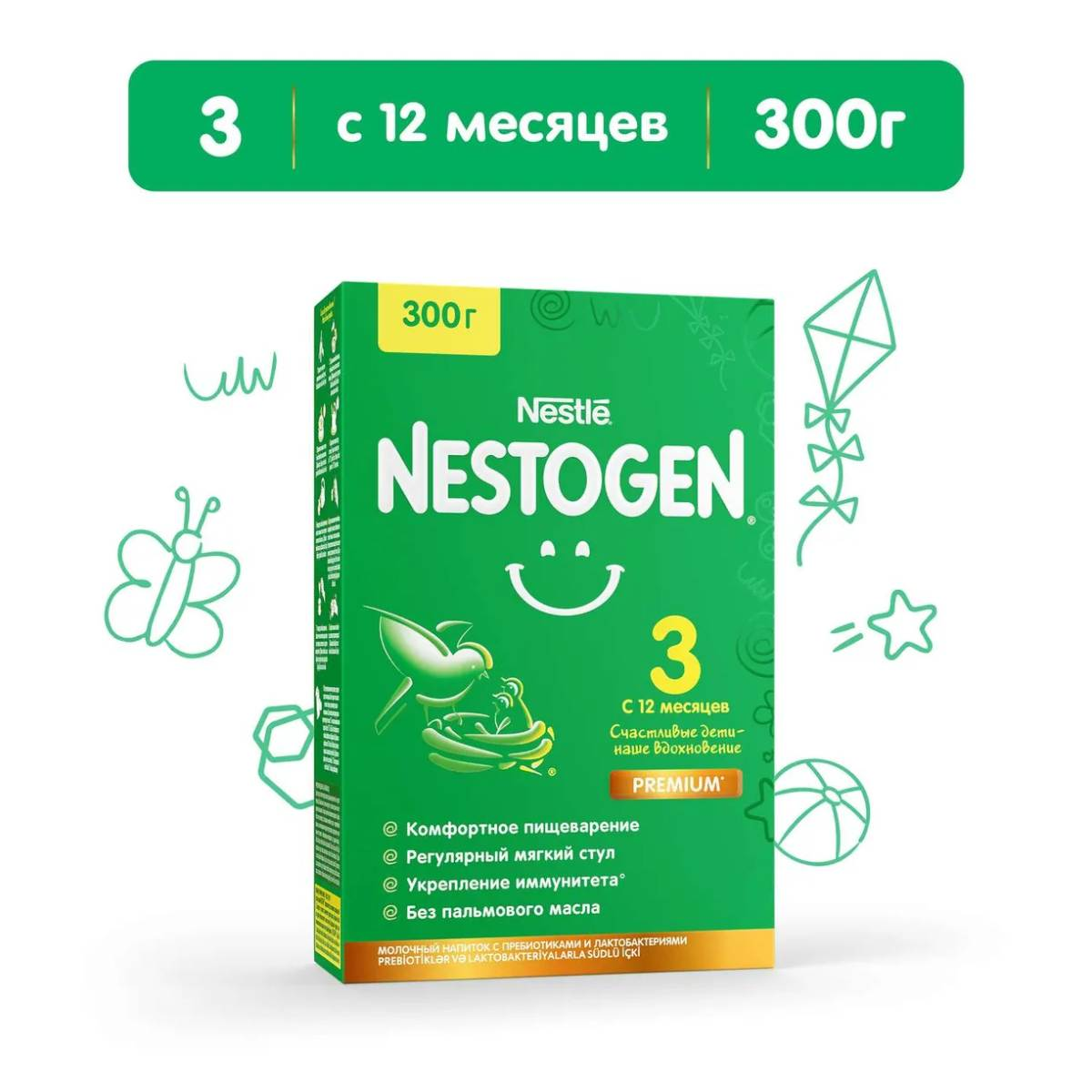Nestle: Смесь 300г Nestogen-3Детское молочко Nestogen 3 было специально разработано для обеспечения сбалансированного здорового питания и комфортного пищеварения малыша. Молочко Nestogen 3 с пребиотиками и уникальными лактобактериями L.reuteri способствует улучшению моторики кишечника, формированию регулярного мягкого стула и становлению здоровой микрофлоры. Здоровая кишечная микрофлора необходима для поддержания, развития и укрепления иммунитета. Молочко Nestogen 3 сбалансированный продукт, заменяющий коровье молоко в рационе ребенка старше года. Детское молочко Nestogen 3 дополняет рацион ребенка питательными веществами, необходимыми для его оптимального роста и развития. ВАЖНОЕ ЗАМЕЧАНИЕ: Идеальной пищей для грудн… 4 590 тг.Marwin.kzДоставка: из АлматыПожаловатьсяКупить!