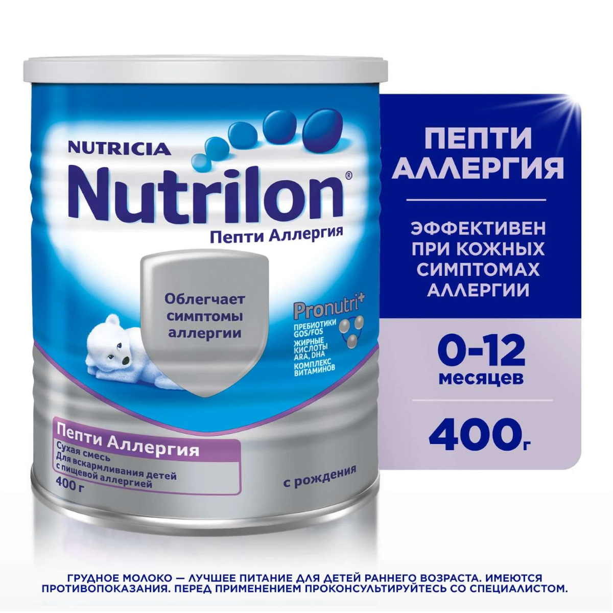 Nutrilon: Смесь с пребиотиками Пепти Аллергия на основе гидролизованного белка 400г, с рожденияФормула для нового поколения Nutrilon Пепти Аллергия с уникальным комплексом Pronutri+ помогает Вашему ребенку развиваться, ведь она включает: улучшенный комплекс особых жирных кислот ARA/DHA, способствующий развитию его интеллекта. пребиотики GOS/FOS, содействующие формированию собственной здоровой микрофлоры кишечника и поддерживающие иммунитет ребенка, помогают снижать риск инфекций. сбалансированный комплекс витаминов и минералов, разработанный с учетом потребностей детей до года, способствующий здоровому физическому росту ребенка. Эффективность Nutrilon Пепти Аллергия доказана в клинических исследованиях. Перед употреблением проконсультируйтесь со специалистом. ВАЖНО: Для п… 20 590 тг.Marwin.kzДоставка: из АлматыПожаловатьсяКупить!
