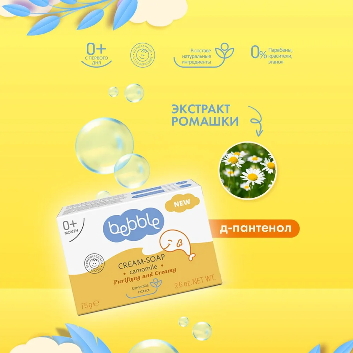 | Крем - мыло Bebble имеет мягкую и кремообразную формулу, которая создает нежную, воздушную пену. Увлажняющие растительные ингредиенты деликатно очищают кожу Вашего маленького сокровища, не иссушая ее.