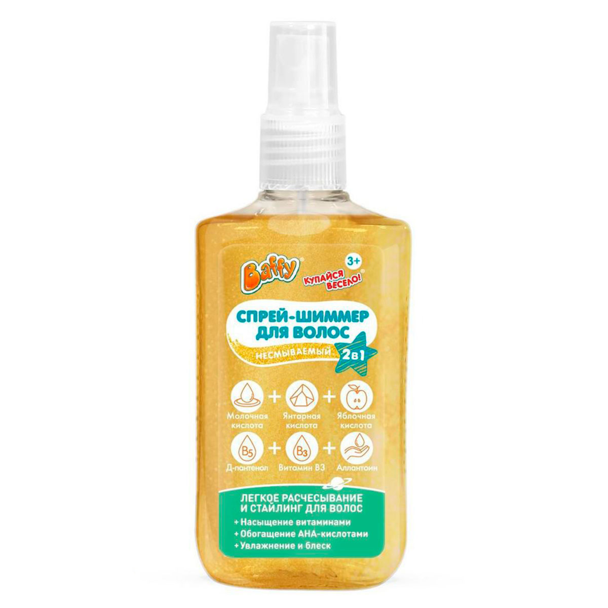 Baffy: Космическая серия. Спрей-шиммер несмываемый для волос несмываемыйСпрей-шиммер для волос с эффектом космического сияния придаст локонам магическое свечение и ухоженный вид. Средство на водной основе легко наносится, быстро впитывается и не утяжеляет волосы, сохраняя их естественную легкость. Его уникальная формула 2 в 1 делает спрей для ежедневного ухода. Комплекс активных кислот — молочной, янтарной и яблочной — увлажняет и укрепляет волосы, разглаживает их поверхность и защищает от внешних воздействий. Д-пантенол и витамин B3 проникают в структуру волос, наполняя их энергией, делая сильнее и эластичнее. Аллантоин образует невидимую защитную пленку, которая бережет волосы от неблагоприятных факторов. Спрей не содержит силиконов, парабенов и фталатов, обе… 2 790 тг.Marwin.kzДоставка: из АлматыПожаловатьсяКупить!
