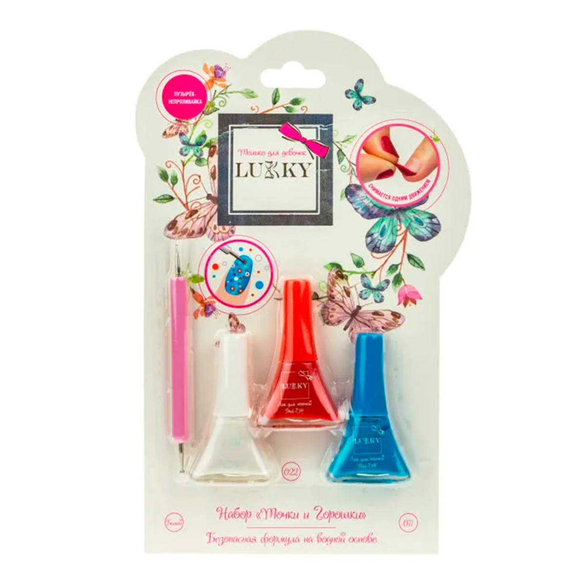 Lukky: Набор "Точки и Горошки": 3 лака №2Будь дизайнером своего маникюра вместе с набором от Lukky "Точки и Горошки"! С помощью этого набора из трех лаков белого, голубого и красного цветов и специального инструмента для нанесения точек и горошков легко воплотить в жизнь все даже самые смелые фантазии. Твой новый маникюр будет точно приковывать внимание и восхищать. А при желании лак можно легко удалить, подержав ногти несколько минут в теплой воде. В данный набор входят 3 лака для ногтей и инструмент для нанесения точек и горошков (дотс). 2 100 тг.Marwin.kzДоставка: из АлматыПожаловатьсяКупить!
