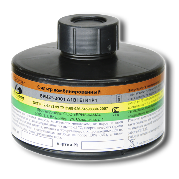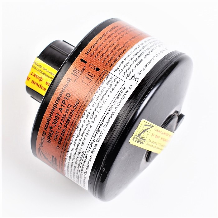 Фильтр комбинированный Бриз-3001 A1P1 R D Черный8 500Купить!тг. Маркетплейс: Satu.kz SAULET ASTANA спецодежда Доставка: по Казахстану ПожаловатьсяФильтр комбинированный серии «Бриз-3001» A1P1 R D применяется для очистки выдыхаемого загрязненного воздуха от: паров и газов органических веществ с температурой кипения выше 65°С (например, бензол, к еще→силол, толуол, бензин, керосин, галоидорганические соединения, нитросоединения бензола и его гомологов, эфиры, спирты, кетоны, анилин, тетраэтилсвинец, фосфор- и хлорорганические