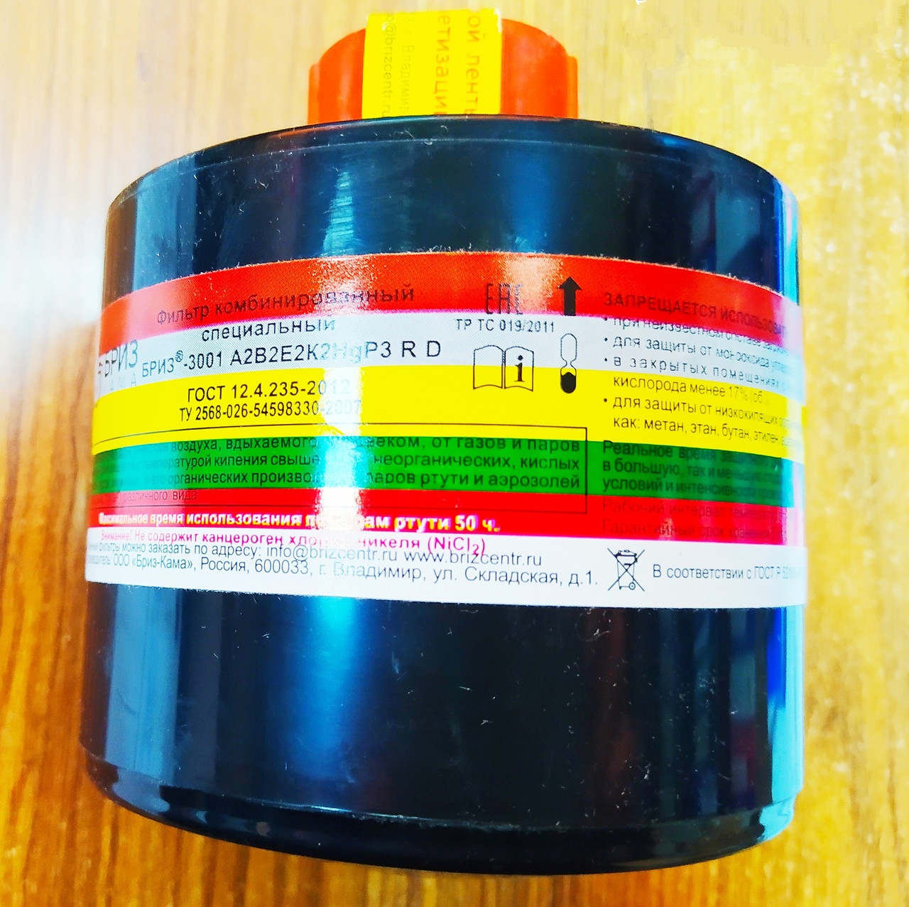 Фильтр противогазовый Бриз-3001 А2В2Е2К211 500Купить!тг. Маркетплейс: Satu.kz SAULET ASTANA спецодежда Доставка: по Казахстану ПожаловатьсяФильтр комбинированный Бриз-3001 Обладает высокими защитными свойствами от опасных химических веществ (ОХВ). Высокоэффективен при работе с тонкодисперсными аэрозолями различной химической природы, бак еще→териями, вирусами, а так же в атмосфере с высоким уровнем запыленности. Обеспечивает возможность многосменной защиты (многоразового использования), т.е. фильтры могут быть