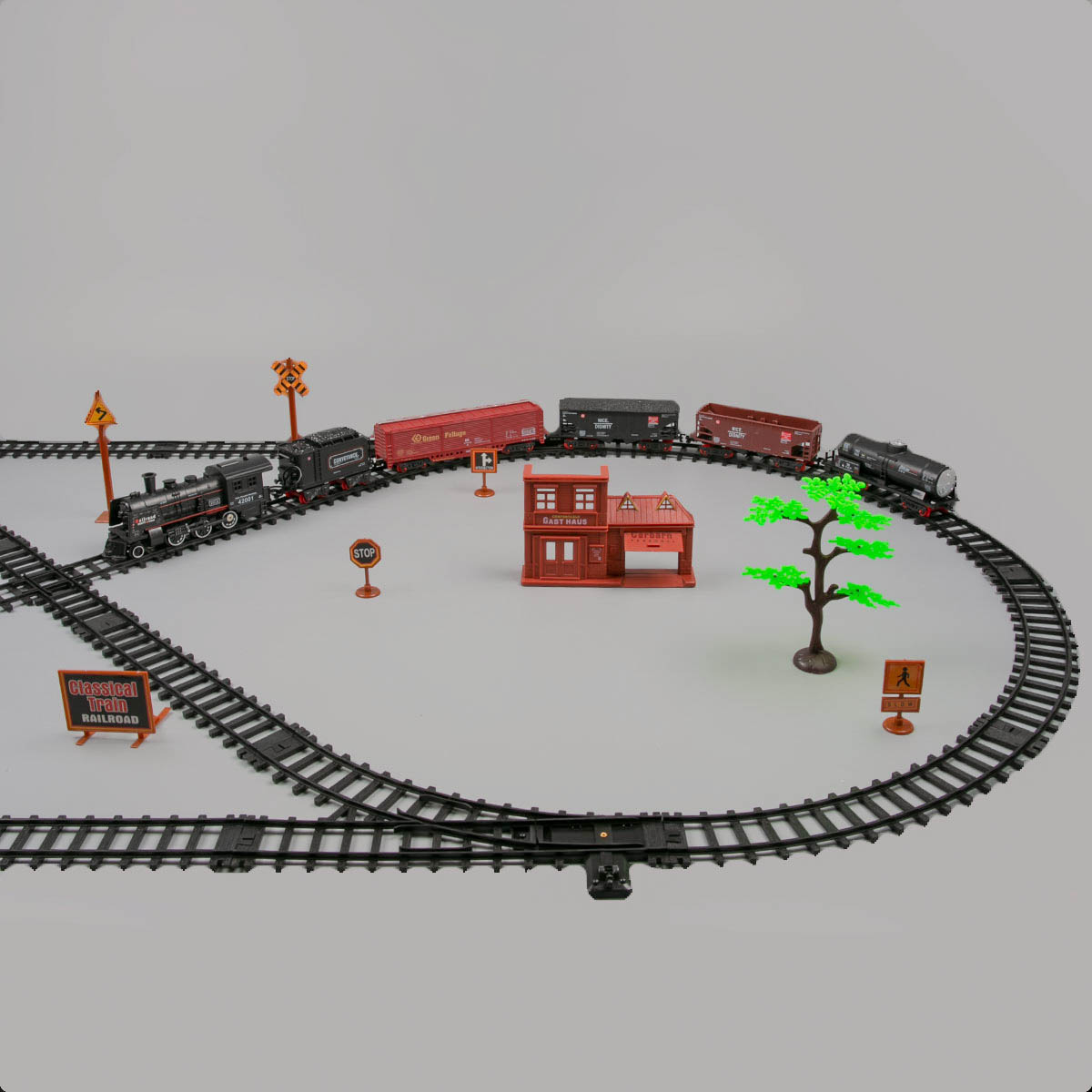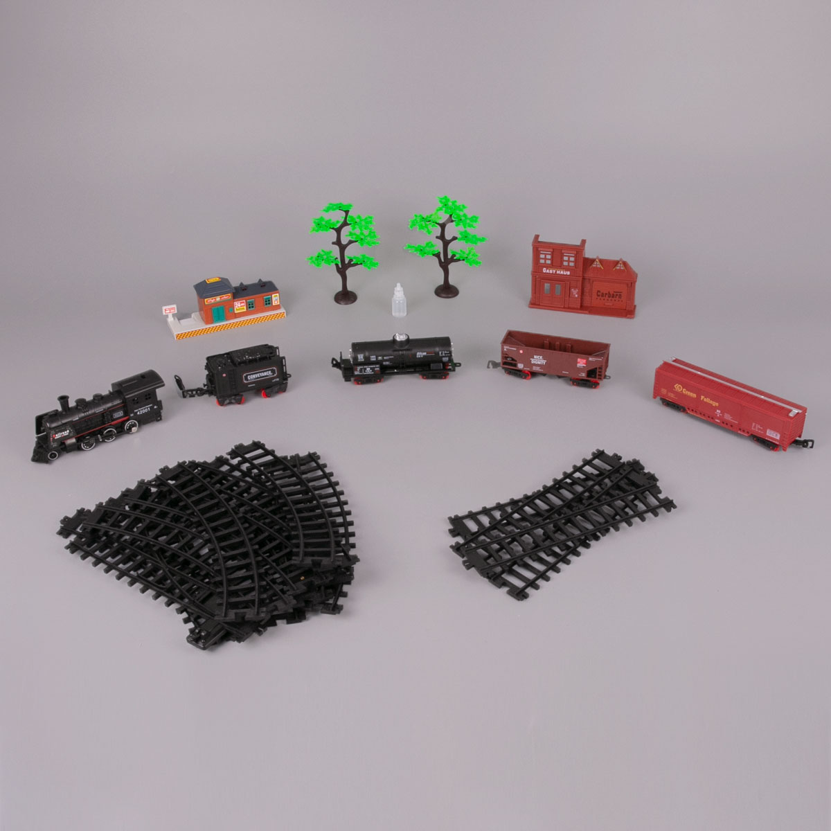 Rail King: Набор товарный состав (5 вагонов)23 590Купить!тг.Marwin.kzДоставка: из АлматыПожаловатьсяЖелезная дорога прекрасный подарок для Вашего ребенка, который принесет бурю радости и приятных впечатлений от игры с ней. Данная игрушка полностью детализирована и напоминает настоящий поезд. Локом еще→отив не только движется, но и гудит, дымит и светится как самый настоящий поезд. К локомотиву присоединяются 3 вагона. Локомотив оснащен специальным резервуаром для воды, благодаря которому при движении поезда из трубы идет пар. Поезд приводится в движение при нажатии кнопки, которая расположена на дальней части первого вагона локомотива. Передняя фара на локомотиве освещает путь. В комплекте: локомотив, вагон с углем, большой вагон с углем, вагон-контейнер, вагон-цистерна, товарный вагон, 2 дерева, дорожные …
