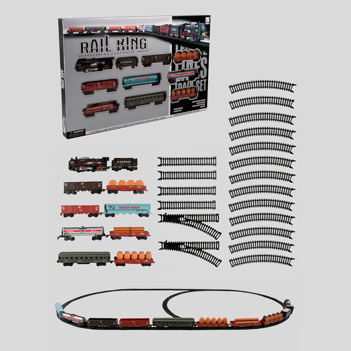 Rail King: Набор пассажирский поезд (3 вагона)15 590Купить!тг.Marwin.kzДоставка: из АлматыПожаловатьсяЖелезная дорога прекрасный подарок для Вашего ребенка, который принесет бурю радости и приятных впечатлений от игры с ней. Данная игрушка полностью детализирована и напоминает настоящий поезд. Локо еще→мотив не только движется, но и гудит, дымит и светится как самый настоящий поезд. К локомотиву присоединяются 3 вагона. Локомотив оснащен специальным резервуаром для воды, благодаря которому при движении поезда из трубы идет пар. Поезд приводится в движение при нажатии кнопки, которая расположена на дальней части первого вагона локомотива. Передняя фара на локомотиве освещает путь. В комплекте: локомотив, вагон с углем, большой вагон с углем, вагон-контейнер, вагон-цистерна, товарный вагон, 2 …