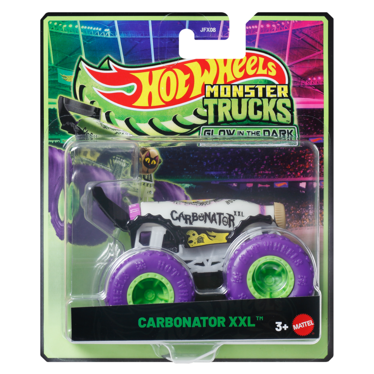 Hot Wheels: Monster Trucks. Glow In Dark. Монстр-трак светящийся - Carbonator XXL8 390Купить!тг.Marwin.kzДоставка: из АлматыПожаловатьсяМашинка Hot Wheels: Monster Trucks из серии Glow In Dark — уникальный монстр-трак, который светится в темноте, добавляя игре особую атмосферу и эффектность. Эта модель выполнена в масштабе 1:64 и еще→сочетает в себе классический агрессивный дизайн серии Monster Trucks с инновационной функцией свечения. Крупные рельефные шины и массивный кузов с яркими графическими элементами делают машинку максимально реалистичной и привлекательной. Специальное покрытие позволяет автомобилю накапливать свет при дневном освещении и ярко светиться в темноте, создавая захватывающий визуальный эффект. Машинка изготовлена из прочных материалов, что обеспечивает долговечность и устойчивость к повреждениям при активной игре или коллекц…