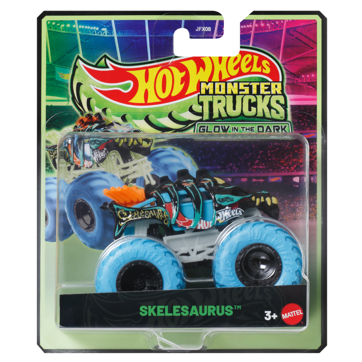 Hot Wheels: Monster Trucks. Glow In Dark. Монстр-трак светящийся - Skelesaurus8 390Купить!тг.Marwin.kzДоставка: из АлматыПожаловатьсяМашинка Hot Wheels: Monster Trucks из серии Glow In Dark — уникальный монстр-трак, который светится в темноте, добавляя игре особую атмосферу и эффектность. Эта модель выполнена в масштабе 1:64 и еще→сочетает в себе классический агрессивный дизайн серии Monster Trucks с инновационной функцией свечения. Крупные рельефные шины и массивный кузов с яркими графическими элементами делают машинку максимально реалистичной и привлекательной. Специальное покрытие позволяет автомобилю накапливать свет при дневном освещении и ярко светиться в темноте, создавая захватывающий визуальный эффект. Машинка изготовлена из прочных материалов, что обеспечивает долговечность и устойчивость к повреждениям при активной игре или коллекц…