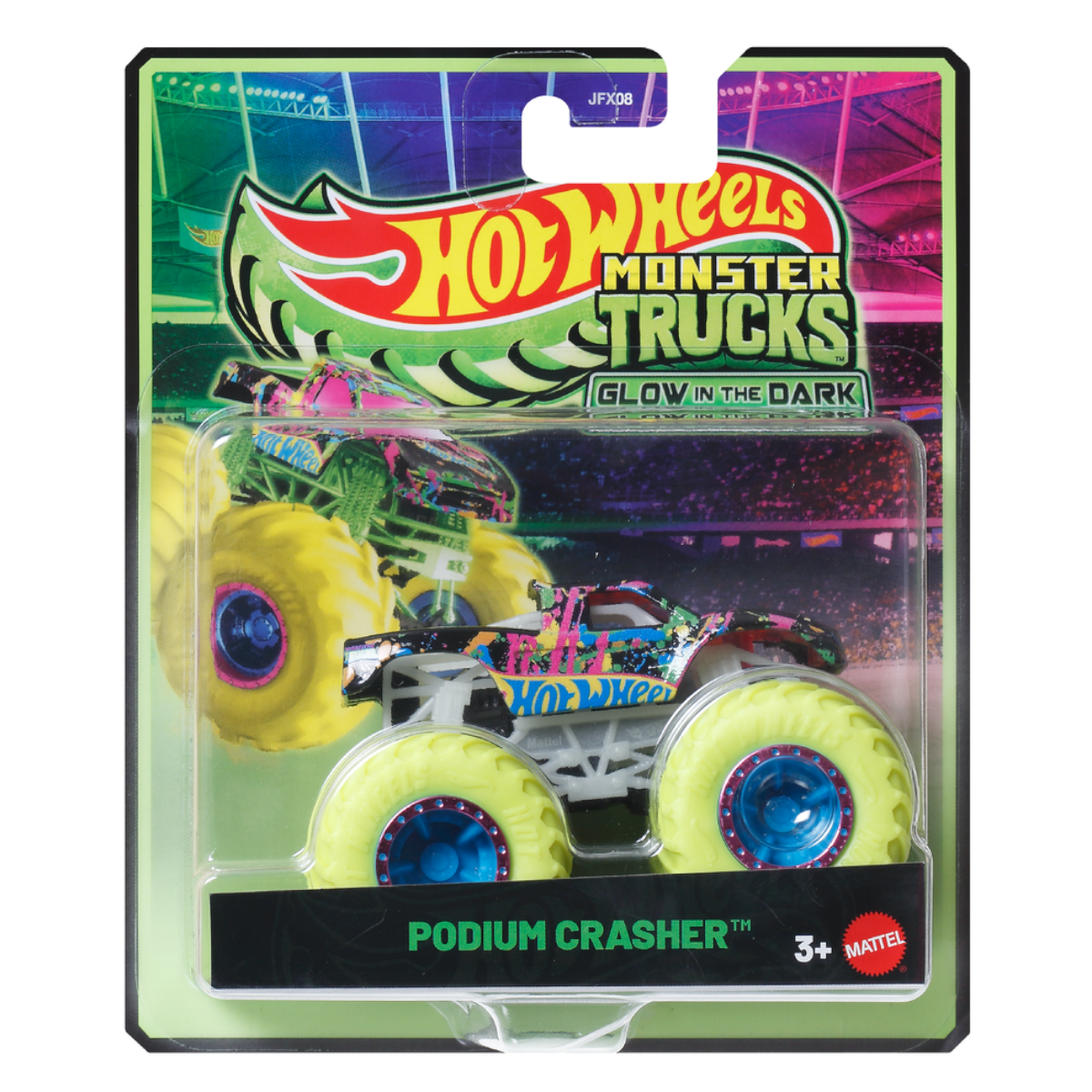 Hot Wheels: Monster Trucks. Glow In Dark. Монстр-трак светящийся - Podium Crasher (dark)8 390Купить!тг.Marwin.kzДоставка: из АлматыПожаловатьсяКоллекционная машинка Hot Wheels: Monster Trucks Glow In The Dark — это яркий и эффектный монстр-трак, который светится в темноте, добавляя игре новое измерение! Эффект свечения делает каждую гонку еще→ещё динамичнее и зрелищнее: автомобиль загорается мягким светом после зарядки дневным светом или под фонариком, создавая впечатление, что он несётся через ночной трек. Модель выполнена в фирменном стиле Hot Wheels с массивными колесами, агрессивным дизайном и яркой окраской, которая отлично смотрится как при дневной игре, так и в темноте. Прочные материалы и качественная сборка обеспечивают долговечность даже при активном использовании. **Glow In The Dark Monster Truck** развивает воображение и ко…