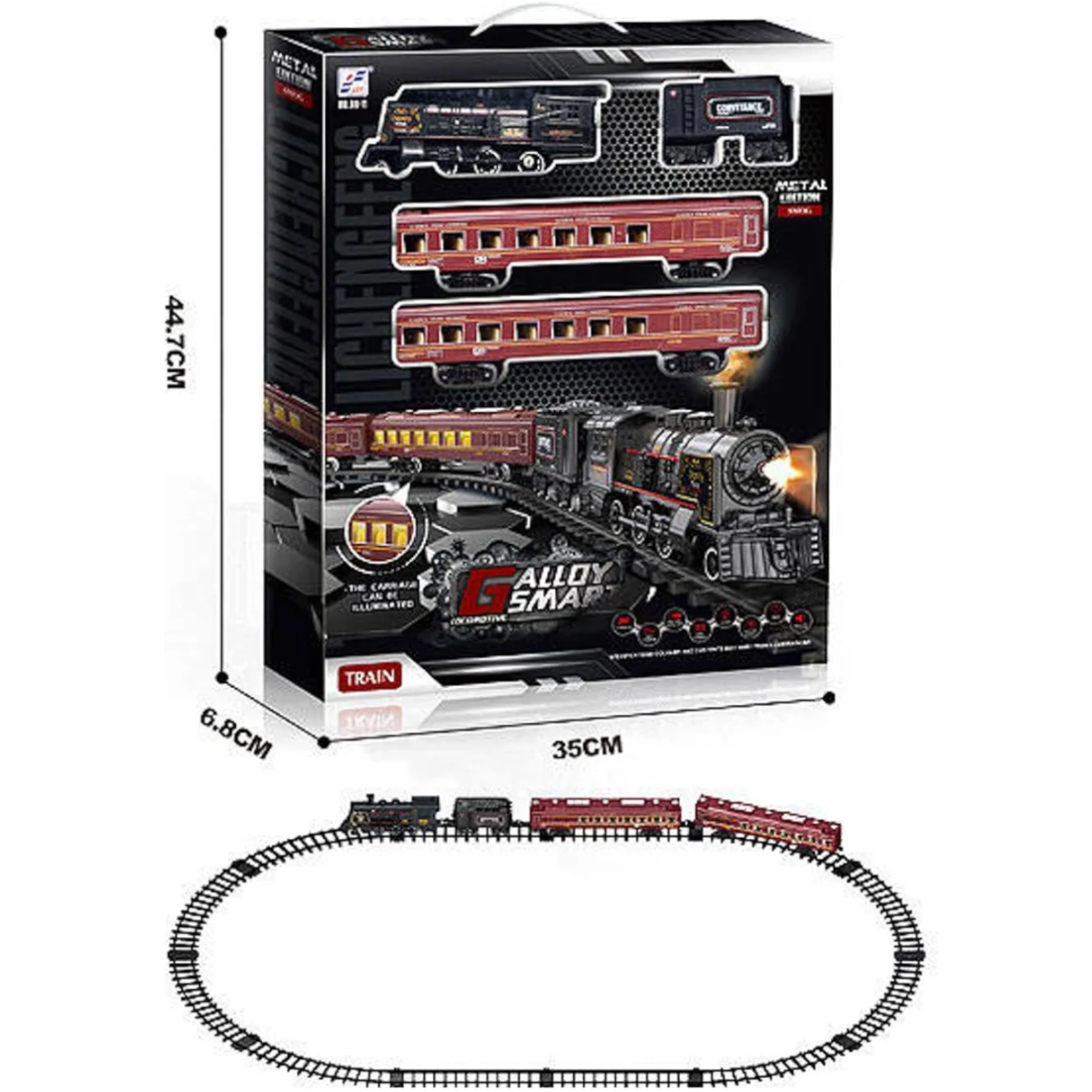 LCF:Игр.н-р "Железная дорога", с эффектом дыма, свет+звук 4 вагона18 190Купить!тг.Marwin.kzДоставка: из АлматыПожаловатьсяИгровой набор LCF "Железная дорога" с эффектом дыма, светом и звуком, включающий 4 вагона, превращает детскую игру в захватывающее железнодорожное приключение! В комплект входят паровоз, 4 вагона, еще→рельсы, станции и аксессуары, а встроенные световые и звуковые эффекты, а также имитация дыма делают поезд максимально реалистичным. Игрушка развивает воображение, мелкую моторику, внимание и навыки сюжетно-ролевой игры, позволяя ребёнку придумывать собственные маршруты и истории. Все элементы изготовлены из безопасных и прочных материалов, подходят для детей старше 3 лет. Набор легко собирается и разбирается, а яркие детали и интерактивные функции делают игру дома или на улице увлекательной и познават…