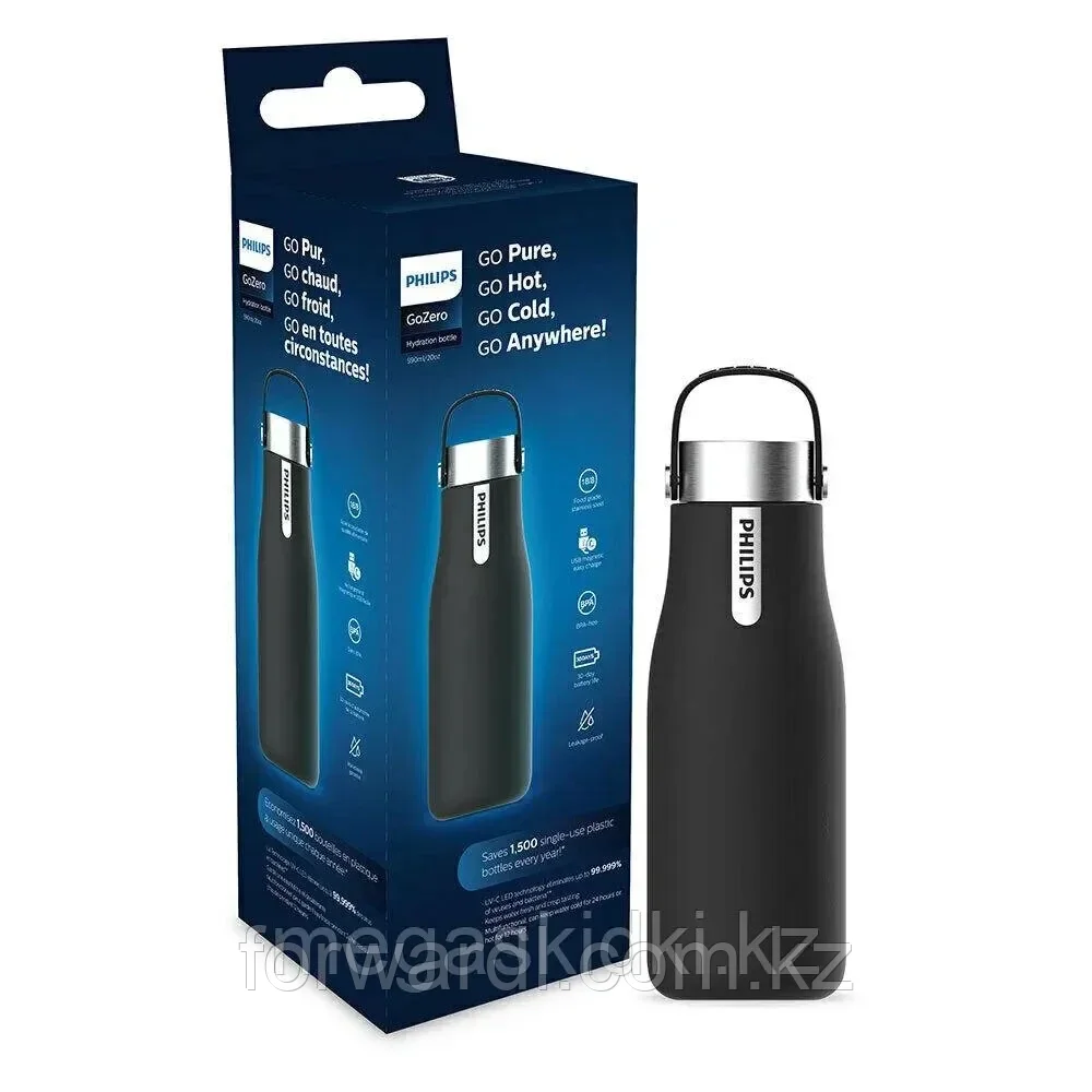 Бутылка с УФ-стерилизатором Philips AWP2787BK/10 (350 мл) черный17 148Купить!тг. Маркетплейс: Satu.kz ТОО "Forward L" Доставка: по Казахстану ПожаловатьсяЕмкость бутылочки - 355 мл Материал бутылки - Нержавеющая сталь 18/8 Термоизоляция - До 24 часов для холодных напитков , До 12 часов для горячих напитков цвет - Матовый черный Материалы крышки - Без б еще→исфенола-А Батарея - Литиевый аккумулятор *Можно мыть в посудомоечной машине *Лампа UV-C LED автоматически загорается каждые 2 часа, чтобы бутылка оставалась чистой, а вода — свежей."