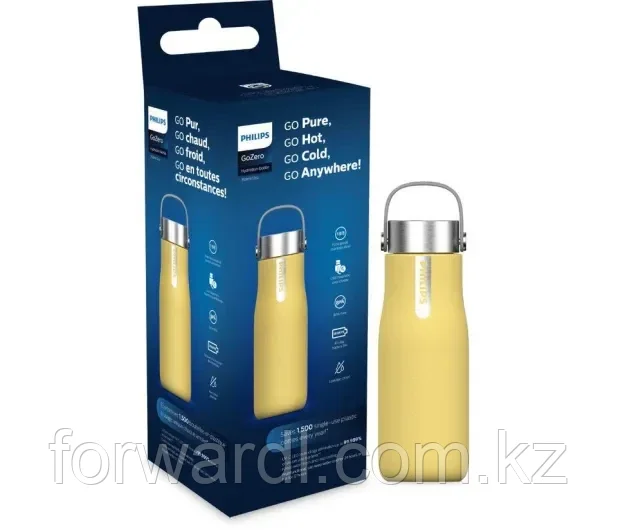 Бутылка с УФ-стерилизатором Philips AWP2788YL/10 (600 мл) желтый17 521Купить!тг. Маркетплейс: Satu.kz ТОО "Forward L" Доставка: по Казахстану ПожаловатьсяЕмкость бутылочки - 590 мл Материал бутылки - Нержавеющая сталь 18/8 Термоизоляция - До 24 часов для холодных напитков , До 12 часов для горячих напитков цвет - Жёлтый Материалы крышки - Без бисфенола еще→-А Батарея - Литиевый аккумулятор *Можно мыть в посудомоечной машине *Лампа UV-C LED автоматически загорается каждые 2 часа, чтобы бутылка оставалась чистой, а вода — свежей.