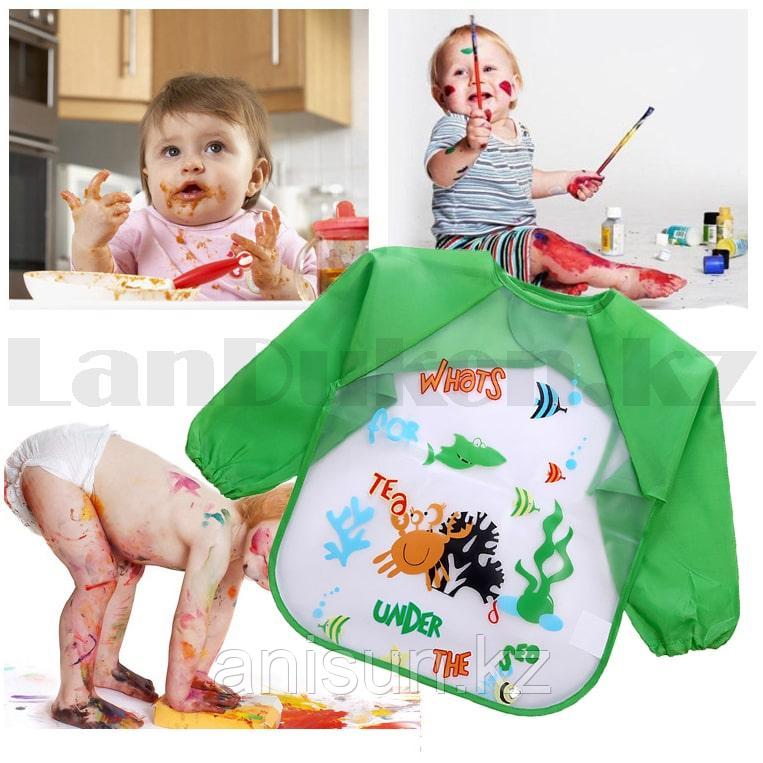 Детский фартук с рукавами непромокаемый слюнявчик с морскими обитателями зеленый2 094Купить!тг. Маркетплейс: Satu.kz Ani-Sun Trade Доставка: по Казахстану ПожаловатьсяДетский непромокаемый фартук Нагрудник детский с рукавами Представляем вашему вниманию детский фартук с рукавами для малышей. На воротнике фартука есть ленты для крепления, материал фартука изготовлен еще→из полиэстера и клеенки, что позволяет вашему малышу оставаться чистым при приеме пищи, а так же при рисовании и лепки. Яркий узор поднимет настроение любому ребенку, удобный и практичный предмет гардероба.