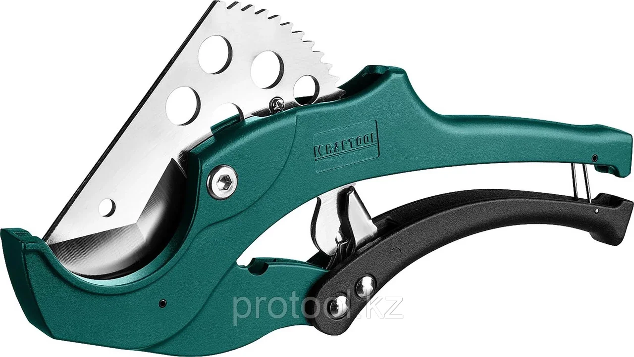 KRAFTOOL Alligator-63, до 63 мм, автоматический труборез по металлопластиковым и пластиковым трубам (23408-63) 23408-63z01Высокотехнологичный инструмент для резки всех видов металлопластиковых и пластиковых трубПреимуществаСпециализированное лезвие изготовлено из высококачественной японской стали SK5Лезвие закалено до твёрдости 57 HRC, поэтому дольше сохраняет остроту и выдерживает нагрузкиV-образный тип лезвия не заламывает трубу во время отрезки.Тефлоновое покрытие лезвиеОсобый храповый механизм для работы одной рукой без затрачивания особых усилийБыстрый возврат лезвия в исходной положение отжатием нижней рукояткиИспользованиеДля разрезания различного типа пластиковых и металлопластиковых труб при монтаже водопроводных и отопительных систем. 31 240 тг.All-tools.kzДоставка: из АлматыПожаловатьсяКупить!
