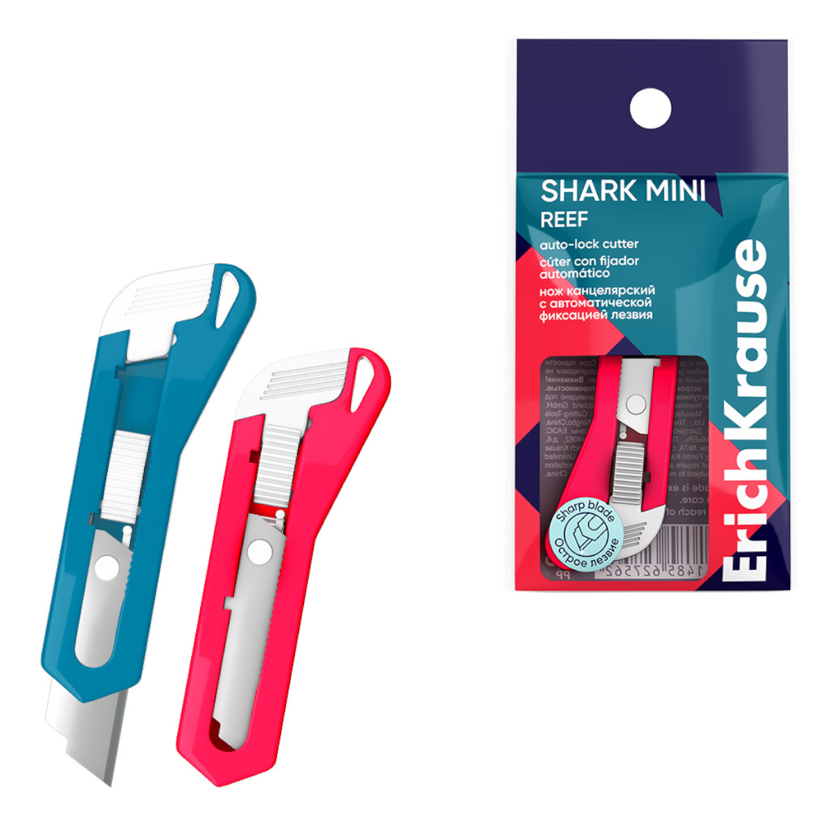 Нож канцелярский ErichKrause Shark Mini Reef, с автоматической фиксацией лезвия, ассорти790Купить!тг.Marwin.kzДоставка: из АлматыПожаловатьсяКанцелярский нож ErichKrause Shark Mini Reef — компактный и удобный инструмент для точного и аккуратного разрезания бумаги, картона, пленки и других материалов. Оснащен автоматической фиксацией ле еще→звия, что обеспечивает безопасную и стабильную работу без самопроизвольного выдвижения. Прочный корпус удобно лежит в руке, а яркий дизайн в ассортименте делает нож заметным и стильным аксессуаром на рабочем столе. Подходит для школы, офиса, творчества и домашнего использования. Надежный, легкий и простой в обращении. Внимание! Товар в ассортименте. Что значит «товар в ассортименте»? Всё очень просто. Это значит, что под одним названием у нас числится несколько похожих товаров. При заказе обязательно у…