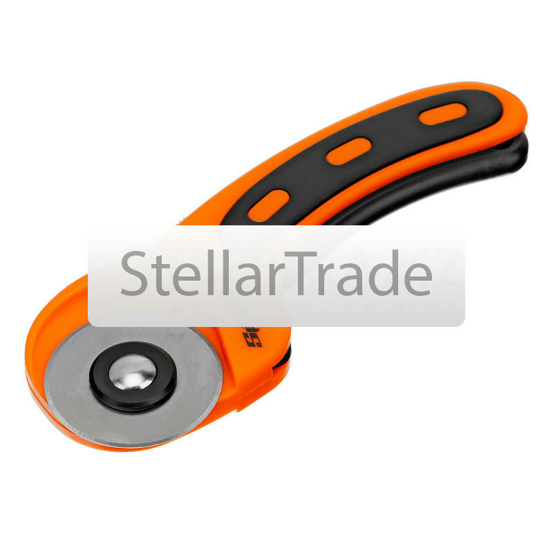 Нож SPARTA 7899051 670Купить!тг.Stellartrade.kzДоставка: из АлматыПожаловатьсяНож Sparta 789905 с пластмассовой ручкой пистолетного типа оборудован вращающимся лезвием-роликом диаметром 45 мм, благодаря чему легко режет картон, линолеум, плотные ткани, кожу и другие материалы. еще→Он будет полезен на строительной площадке в ходе проведения отделочных работ, пригодится также мастерам хенд-мейда. Преимущества Лезвие из стали 60 отличается прочностью и