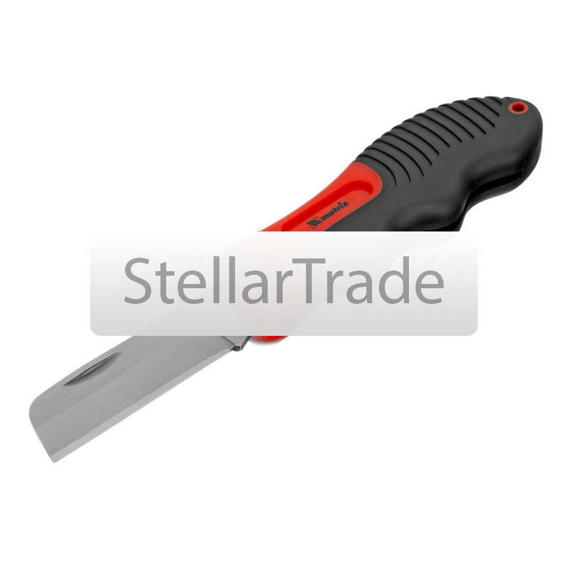 Складной нож электрика Matrix 78987 с прямым лезвием и эргономичной двухкомпонентной рукояткой используется для рассечения проводов и снятия с них изоляции. Прямое лезвие длиной 60 мм удобно для работ еще→ы в стесненных условиях. Инструмент предназначен для электромонтажных работ, подходит для бытового применения. Преимущества Режущее полотно из нержавеющей стали толщиной