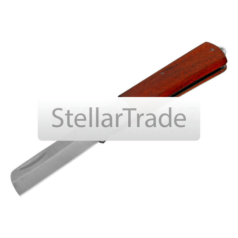 Складной нож Sparta 78998 с прямым лезвием и деревянной ручкой эффективно справляется с резкой резиновых, кожаных и картонных изделий. За счет своей универсальности он будет полезен профессиональным и еще→частным мастерам, туристам, любителям отдыха на природе. Преимущества Острозаточенное лезвие из нержавеющей высококачественной стали 3Hr13 обладает высокой