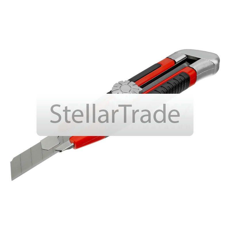 Нож MATRIX 789642 200Купить!тг.Stellartrade.kzДоставка: из АлматыПожаловатьсяНож Matrix 78964 в металлическом корпусе, с выдвижным трапециевидным лезвием, применяется при резке бумаги, картона, кожи, а также для раскройки линолеума или обоев. Инструмент успешно справляется с э еще→той работой благодаря стальному лезвию шириной 19 мм. Используется в профессиональной сфере и в быту. Преимущества Прочность и долговечность - лезвие изготовлено из