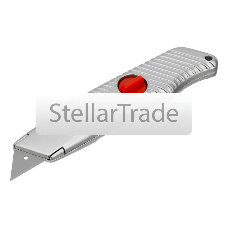 Нож MATRIX 78914850Купить!тг.Stellartrade.kzДоставка: из АлматыПожаловатьсяНож Matrix 78914 с выдвижным лезвием шириной 18 мм, винтовым фиксатором и металлической направляющей используется в ходе ремонта и отделки помещений, будет полезен на складе, в офисе, в кожевенной мас еще→терской, а также в быту. Легко режет бумагу, картон, линолеум, кожу, обои. Подходит для интенсивного использования, поскольку его конструкция усилена металлической направляющей.
