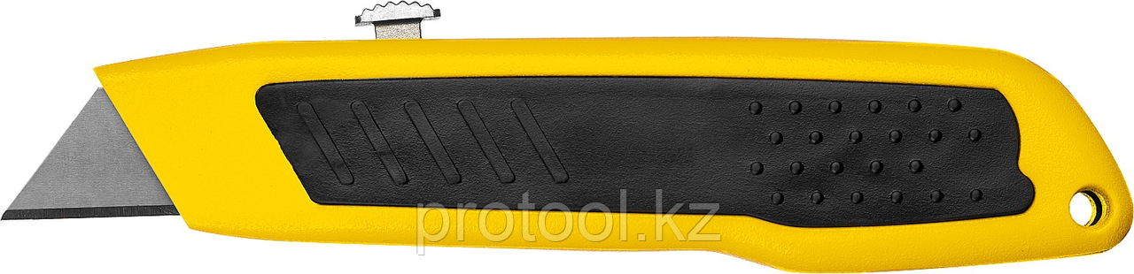 STAYER A24, универсальный металлический нож с трапециевидным лезвием (0921)1 412Купить!тг. Маркетплейс: Satu.kz Protool.kz - продажа электроинструмента, ручные ст Доставка: по Казахстану ПожаловатьсяПреимущества Легкий металлический обрезиненный корпус для удобства работы Выдвижное лезвие - автостоп Трапециевидное двухстороннее лезвие из стали 65Mn с двойной заточкой Описание Универсальный нож с еще→трапециевидным лезвием для реза различных материалов (линолеум, ковровые покрытия, гипсолитовые плиты, гипсокартон, кровельные материалы, пластик, дерево). Применение Применяется для реза различных материалов Характеристики Артикул 0921 Тип лезвия А24 Тип корпуса металлический Материал лезвия сталь 65Mn Тип фиксатора Автостоп Кассета с запасными лезвиями Нет Быстрая замена лезвий Нет