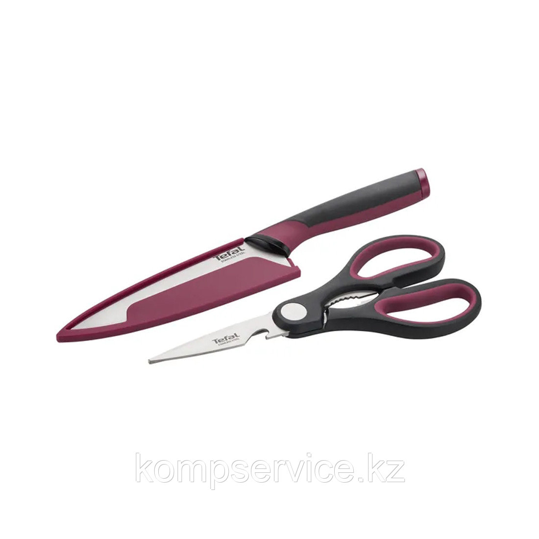 Набор кухонный шеф-нож и ножницы Tefal K250S22510 990Купить!тг. Маркетплейс: Satu.kz ИП КУДАЙБЕРГЕНОВА И.Б. Доставка: по Казахстану ПожаловатьсяНабор кухонный шеф-нож и ножницы Tefal K250S225 имеет лезвия из нержавеющей стали. Материал устойчив к механическому воздействию, повреждениям и образованию коррозии. Поварской нож 20 см Изделие подхо еще→дит для измельчения ингредиентов, позволяет сделать тонкую нарезку из овощей, фруктов, сыра и ветчины. Острое лезвие длиной 15 см аккуратно разрезает продукты. Благодаря качественной