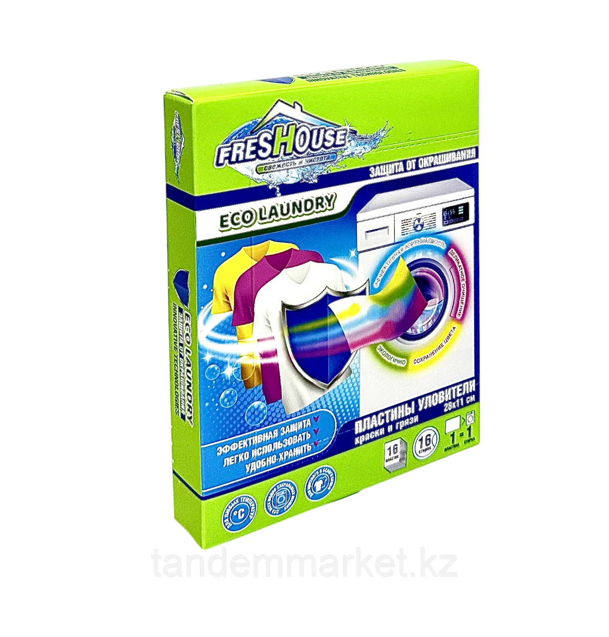 Ловушки для защиты цвета при стирке Freshouse1 121Купить!тг. Маркетплейс: Satu.kz ТОО "TANDEM Co. Ltd" Доставка: по Казахстану ПожаловатьсяПластины уловители цвета Одноразовые салфетки для смешанной стирки цветного и белого белья против окрашивания MPF надежно защищают белье от окрашивания, линьки и серого оттенка в процессе стирки. Плас еще→тины для стирки содержат специальные компоненты, которые действуют по принципу ловушки для цвета, притягивая лишние красители цветного белья и не допуская нежелательного окрашивания во время смешанной стирки. Салфетки для стирки против окрашивания подходят для любых тканей, для ручной и машинной стирки при любых температурных режимах. Новое цветное белье стирайте в первый раз отдельно. В упаковке 16 пластин