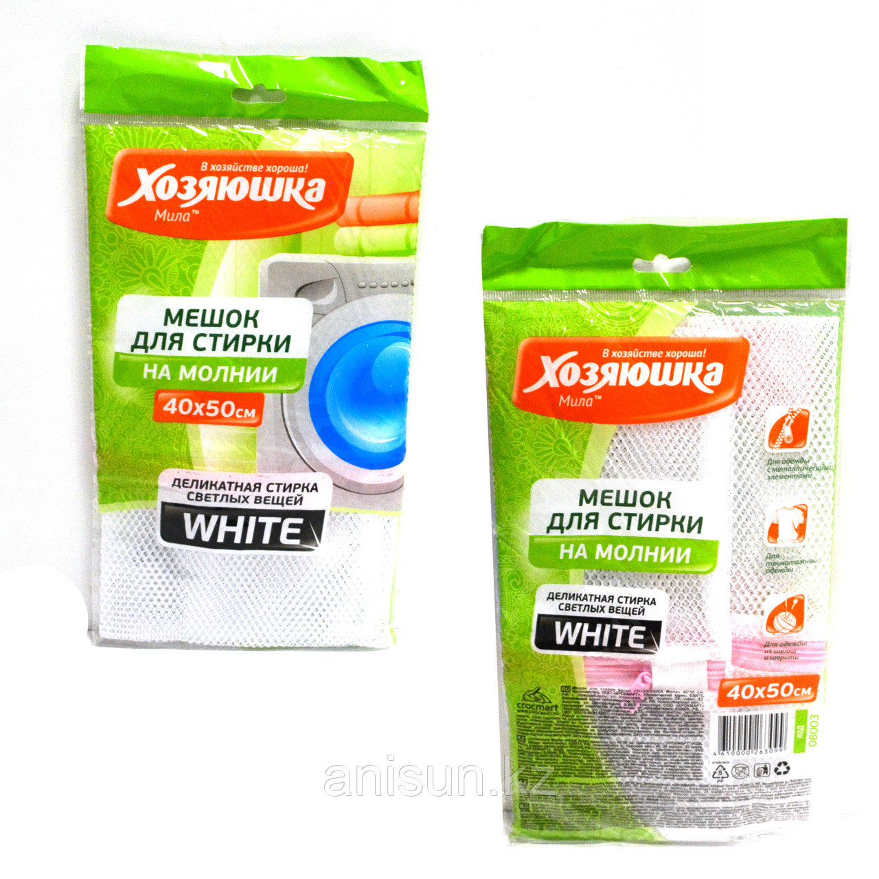 Мешок для стирки Хозяюшка 40х50 см Белый1 126Купить!тг. Маркетплейс: Satu.kz Ani-Sun Trade Доставка: по Казахстану Пожаловатьсяпредназначен для стирки вещей из деликатных тканей, нижнего белья и предметов гардероба, внешний вид которых вы хотите сохранить безупречным надолго. Предотвращает растягивание одежды, потерю мелких э еще→лементов, вроде крючков или пуговиц. Мешок долговечен, для многократного применения; подходит для автоматических стиральных машин и для стиральных машин активаторного типа. Размер - 400х500 мм.