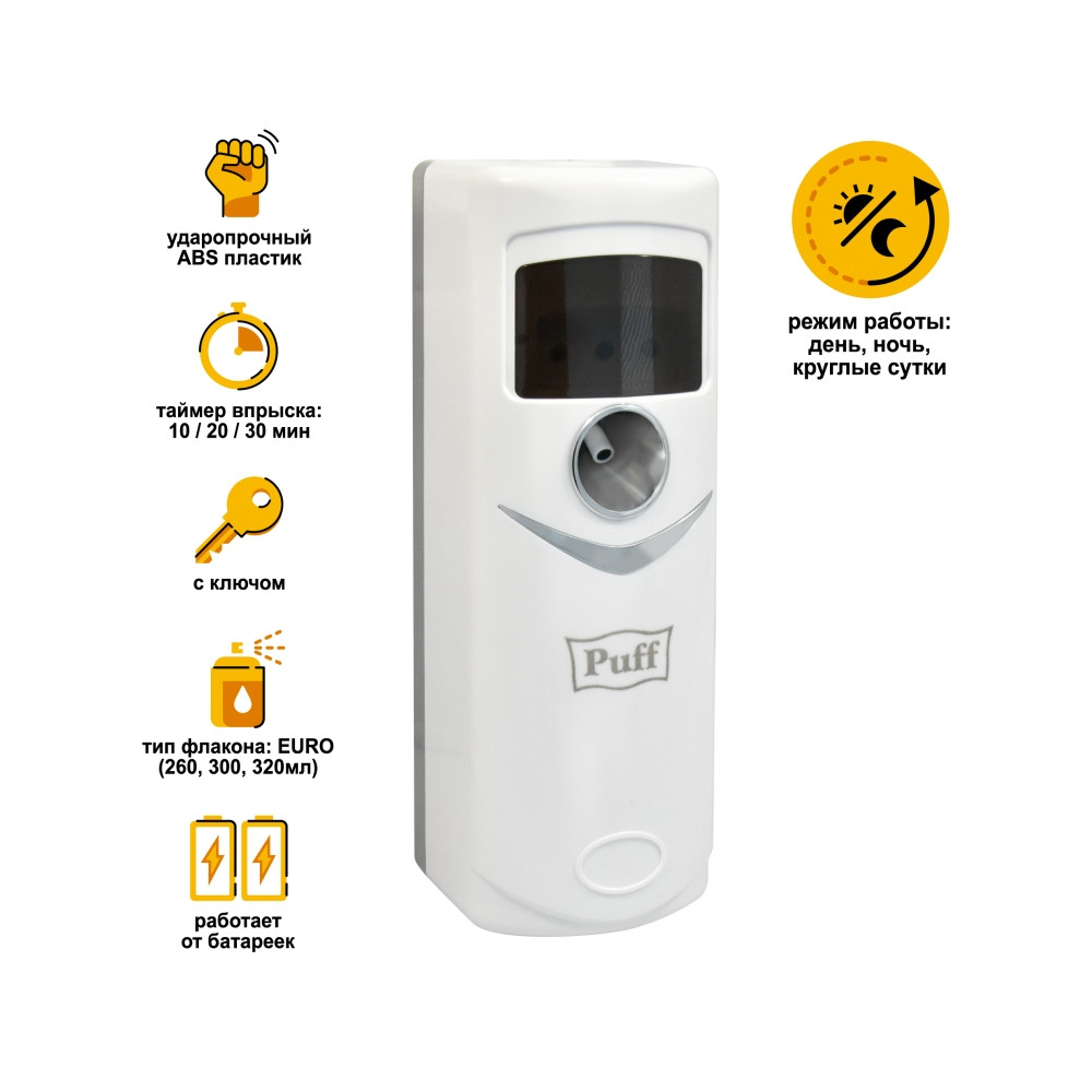 Освежитель воздуха автоматический puff-6115 Белый21 000Купить!тг. Маркетплейс: Satu.kz ТОО "FIRE-PLACE" Доставка: по Казахстану ПожаловатьсяОсвежитель воздуха автоматический Puff-6115 ударопрочный, EURO 320, 300 и 260 мл 95х90х245 Материал корпуса: ударопрочный пластик ABS белый цвет Напряжение (В): DC: 2 x 1,5 типа D Тип флакона (мл): EU еще→RO (320, 300 и 260) Габаритные размеры (ШГВ): 85х90х240 мм Вес нетто (кг): 0,400.