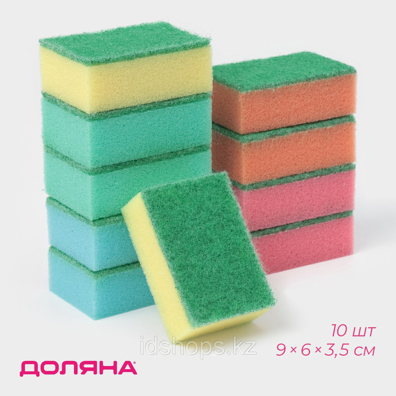 Набор губок для посуды с чистящим слоем Доляна «Макси», 9×6×3.5 см, 10 шт.528Купить!тг. Маркетплейс: Satu.kz ID Shopps.kz - Оптово-розничный Склад Доставка: по Казахстану ПожаловатьсяПознакомьтесь с идеальным помощником для вашей кухни и уборки — набором губок бытовых с чистящим слоем Доляна «Макси». Эти губки станут незаменимыми для любого дома, обеспечивая чистоту и порядок без еще→лишних усилий.Каждая губка размером 9Г—6Г—3,5 см идеально лежит в руке и позволяет легко очищать самые труднодоступные места. Их универсальный размер делает их подходящими для