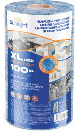 Универсальная салфетка с абразивом Sunlight, рулон 100 шт1 500Купить!тг. Маркетплейс: Satu.kz Smart Saudager (ИП "CleanLand") Доставка: по Казахстану ПожаловатьсяУниверсальные салфетки с абразивом Салфетки Sunlight с абразивом — идеальны для чистки кухни, ванной, мебели и бытовой техники. Абразивная текстура помогает легко удалять жир, налет и другие сложные з еще→агрязнения, не повреждая поверхность. Удобный рулон позволяет экономично использовать салфетки по одной. Характеристики: Бренд: Sunlight Тип: универсальные салфетки с абразивом Формат: