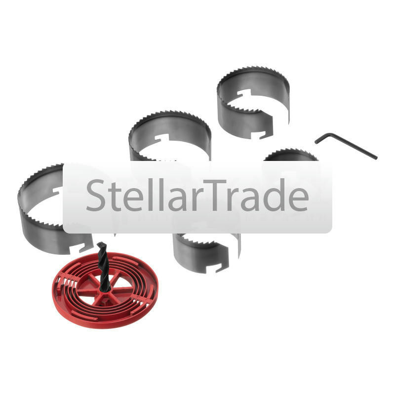 Пилы кольцевые наборные по дереву предназначены для использования в качестве насадок ручной или электрической дрели. Позволяют без специальной подготовки вырезать отверстия диаметром от 26 до 95 мм в еще→дереве, ДСП, ДВП. При хранении все пильные полотна вставлены в пазы, перед работой устанавливают пилу нужного диаметра. В центре держателя установлено центрирующее сверло. Наборы включают в себя пилы следующих размеров: арт. 70450 – 26, 32, 38, 44, 50, 56, 62 мм, арт. 70452 – 26, 32, 38, 44, 50, 56, 62 мм, арт. 70470 – 60, 67, 74, 81, 95 мм.