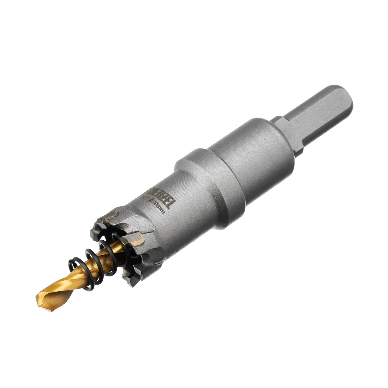Коронка по металлу HSS, 20 мм, нитридтитановое покрытие Denzel 724101mi1 470Купить!тг.All-tools.kzДоставка: из АлматыПожаловатьсяКоронка Denzel 724101 диаметром 20 мм, из стали HSS, с нитридтитановым покрытием, применяется для сверления отверстий в черных, цветных металлах, пластике и других материалах. Рассчитана на профессион еще→альное использование на строительной площадке. Коронка пригодится при прокладке коммуникаций, монтаже оборудования, крепежных элементов и различных конструкций.ПреимуществаПрочность —