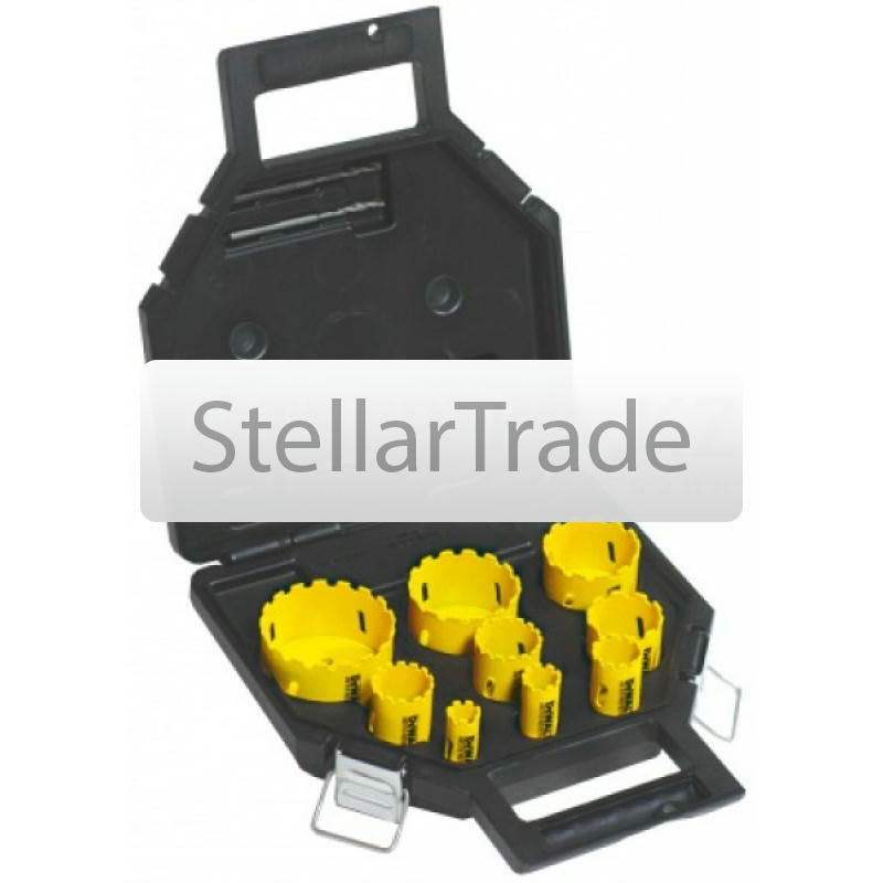 Идеально подходят для вырезания отверстий в кирпичной кладке, легком бетоне, стекловолокне и других абразивных материалах. Могут также использоваться для работ по стали и дереву с гвоздями. Набор цифе еще→нборов для сантехников в пластиковом чемодане, 2x шестигран., 2x направляющих сверла, 9 цифенборов њ 19, 22, 29, 35, 38, 44,57,67,76