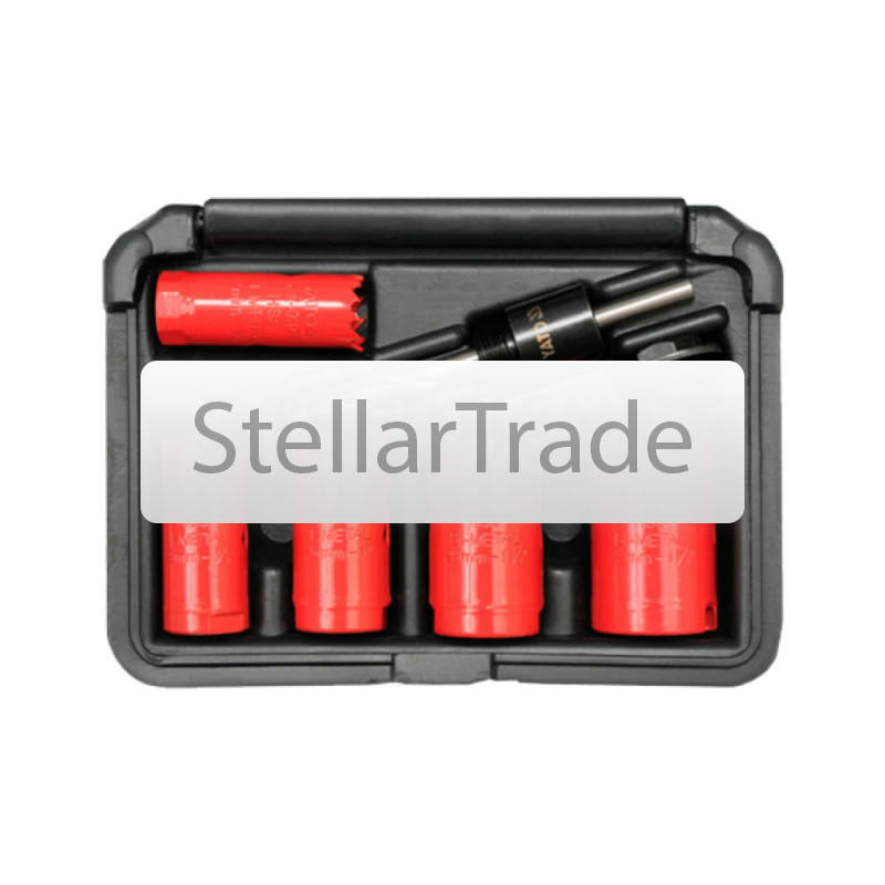 Набор фрез YATO YT-33828 730Купить!тг.Stellartrade.kzДоставка: из АлматыПожаловатьсяYATO YT-3382 - набор профессиональных биметаллических коронок (19 - 32 мм, 7 предметов), предназначенный для сверления отверстий в металлических листах, профилях и трубах. Также отлично подходит для еще→работы с пластиком, мебельными плитами, сэндвич-панелями и полимерами. Преимущества модели Профессиональное назначение: набор подходит для промышленного, сервисного и