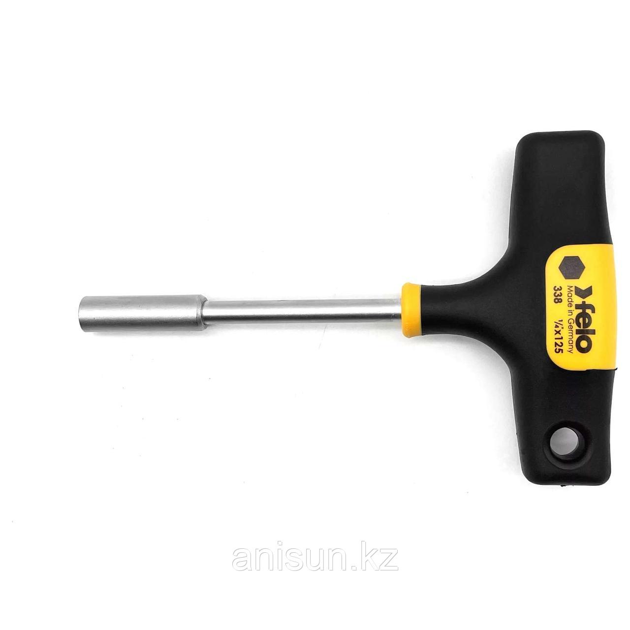 Т-образный ключ под биты Felo 1/4" 3381256012 634Купить!тг. Маркетплейс: Satu.kz Ani-Sun Trade Доставка: по Казахстану ПожаловатьсяТ-образный ключ под биты Felo 1/4" 33812560 - надежный и практичный инструмент для работы с резьбовыми соединениями. Используется совместно с битами 1/4" (внутри магнит для крепления). Рабочая часть и еще→зготовлена из закаленной в масле хром-молибден-ванадиевой стали, что обеспечивает увеличенный ресурс работы изделия. Удобная Т-образная рукоятка имеет покрытие Soft-Grip, благодаря которому ключ