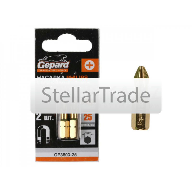 Насадка крестообразная PH2 25мм 2шт с титановым напылением GEPARD (GP3800-25) GP3800-25590Купить!тг.Rubanok.kzДоставка: из АлматыПожаловаться