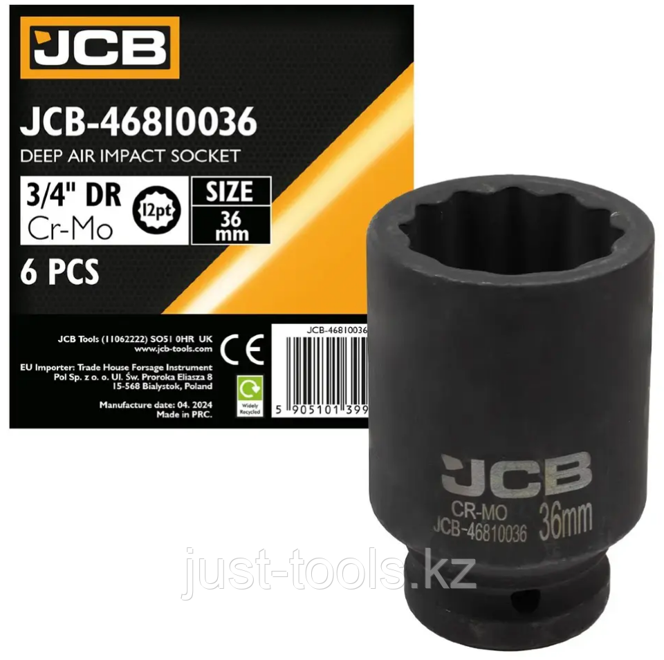 JCB Головка ударная глубокая 56мм (6гр.), 3/4" 60973 JCB-465100567 120Купить!тг.Just-tools.kzДоставка: из АлматыПожаловаться