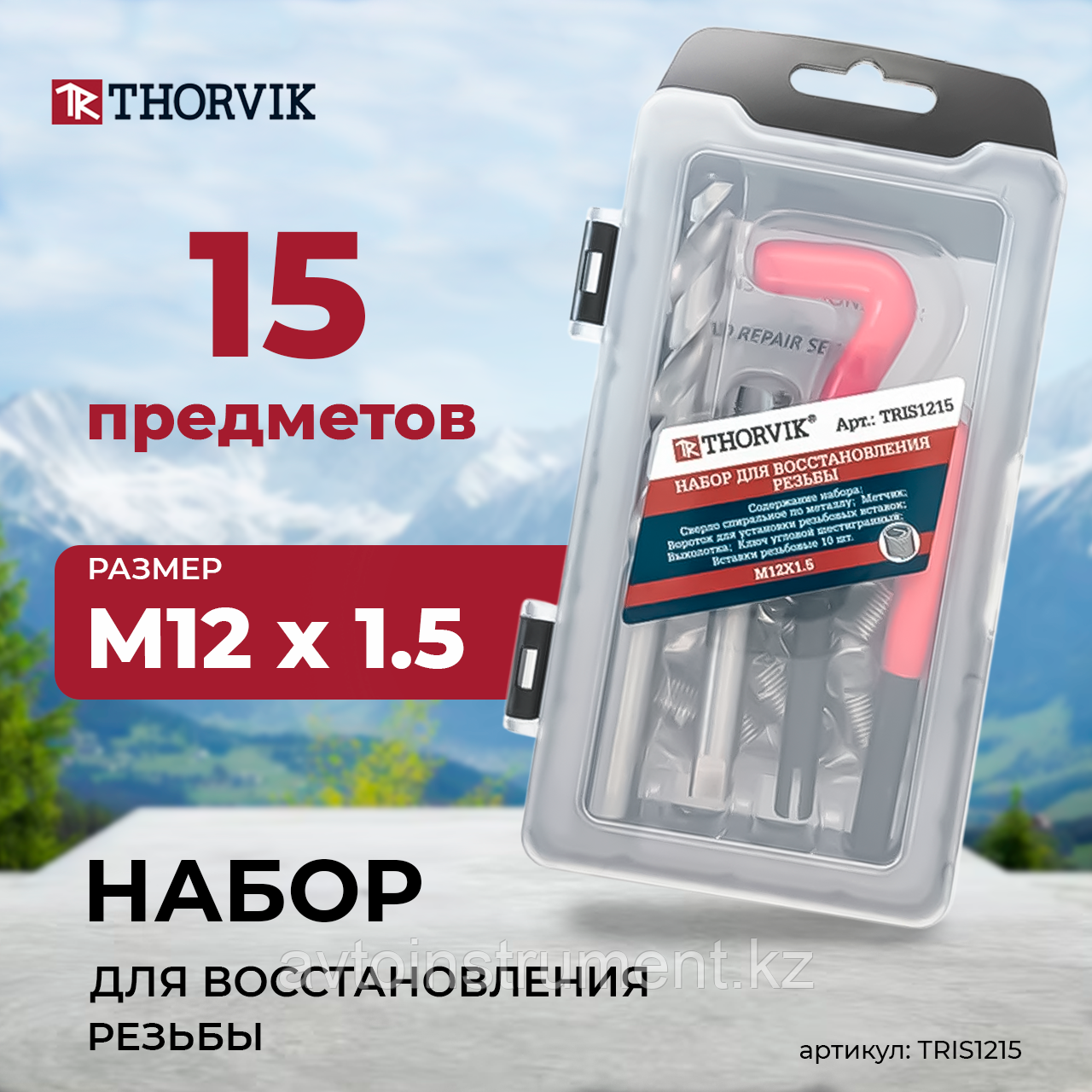 Thorvik TRIS1412512 672Купить!тг.Avtoinstrument.kzДоставка: из АстаныПожаловатьсяОписание: Набор для восстановления резьбы M14x1.25, 15 предметов Комплектация Сверло спиральное по металлу Метчик Вороток для установки резьбовых вставок Выколотка Ключ угловой шестигранны еще→й Вставки резьбовые, 10 шт. Преимущества: Позволяет быстро и качественно восстановить поврежденные резьбы, что экономит время и деньги на замену деталей. Подходит для различных типов