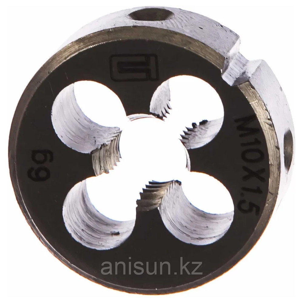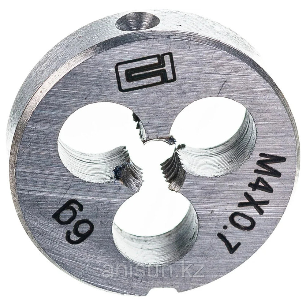 Плашка СИБРТЕХ М4х0.7мм 77009819Купить!тг. Маркетплейс: Satu.kz Ani-Sun Trade Доставка: по Казахстану ПожаловатьсяПлашка СИБРТЕХ М4х0.7мм 77009 - поможет нарезать внешнюю метрическую резьбу. Она проста в использовании, поэтому пригодится в быту при проведении слесарных и монтажных работ даже начинающим мастерам. еще→Цельная конструкция плашки позволяет полностью захватывать деталь и нарезать ее за один проход, благодаря чему получается высокоточная и качественная резьба.