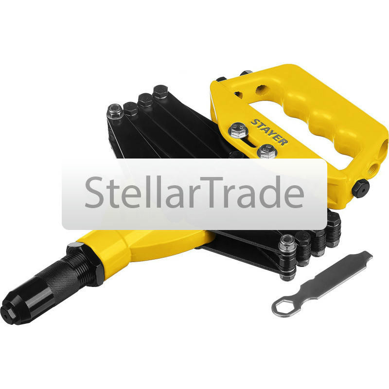 Двуручный заклепочник STAYER HERCULES-64 Professional 3106z0112 300Купить!тг.Stellartrade.kzДоставка: из АлматыПожаловатьсяПрофессиональный двуручный заклепочник Stayer серии Professional с усиленным корпусом имеет повышенный ресурс. Преимущества STAYER 3106_z01: Монтаж заклепок с минимальным уси еще→лием благодаря двухрычажной конструкции Заклепочник оснащен регулятором хода для работы с высокими нагрузками Надежный инструмент с литым корпусом Трехцанговый захват стержня