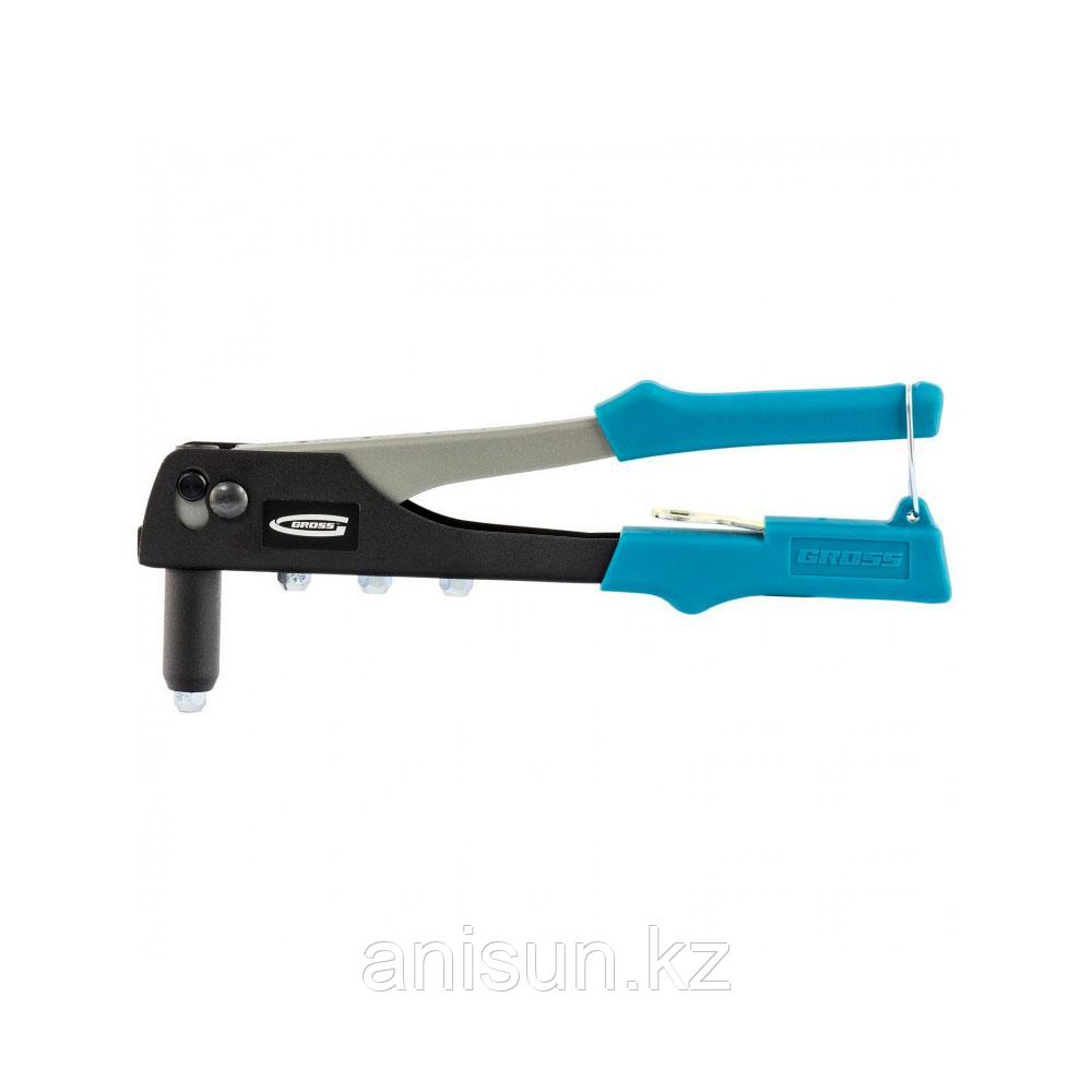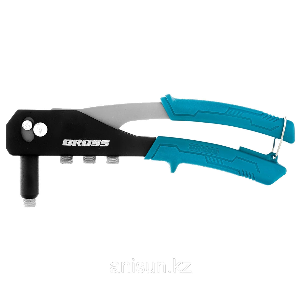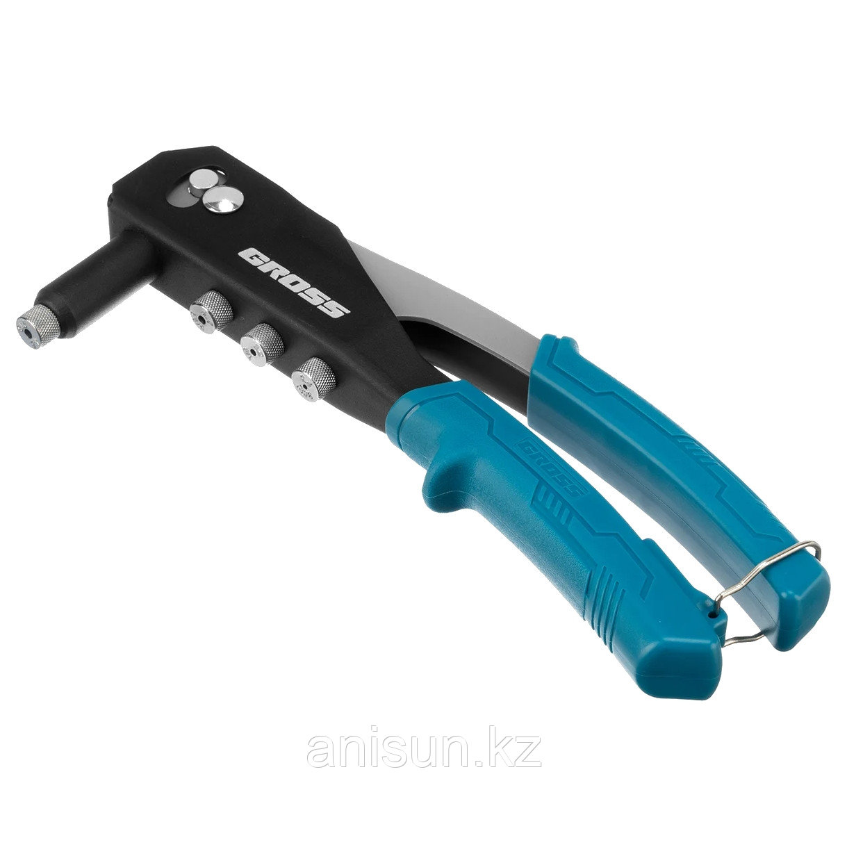 Заклёпочник 258 мм, заклёпки 2,4-4,8 мм GROSS9 511Купить!тг. Маркетплейс: Satu.kz Protool.kz - продажа электроинструмента, ручные ст Доставка: по Казахстану ПожаловатьсяЗаклёпочник 258 мм, заклёпки 2,4-4,8 мм GROSS Заклепочник GROSS предназначен для работ по соединению листового металла, различных тонкостенных конструкций и металлических профилей. В инструменте испол еще→ьзуется цанговый механизм захвата заклепок, изготовленный из хром-молибденовой стали. Рукоятки эргономичной формы изготовлены из термопластичной резины. На оборотной стороне рукоятки