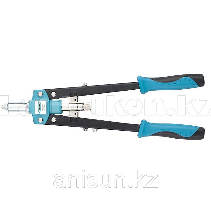 Заклепочник двуручный усиленный 520 мм, удлин.рукоятки, для заклепок 3,2-4,0-4,8-6,0-6,4 40409 (002)85 757Купить!тг. Маркетплейс: Satu.kz Ani-Sun Trade Доставка: по Казахстану ПожаловатьсяЗаклепочник усиленный, двуручный, удлиненные рукоятки, заклепки 3.2-4.0-4.8-6.0-6.4 GROSS. Незаменимый инструмент для работ по соединению листового металла, различных тонкостенных конструкций и металл еще→ических профилей. В инструменте используется цанговый механизм захвата заклепок, изготовленный из хром-молибденовой стали (SCM415). Он особенно устойчив к постоянным механическим воздействиям и обеспечивает надежный захват заклепки. Эргономичные рукоятки позволяют снизить нагрузку на руки при длительной работе. В комплект заклепочника входят сменные насадки для работ стальными, алюминиевыми и нержавеющими заклепками диаметра 3,2 мм, 4,0 мм, 4,8 мм, 6,0 мм, 6,4 мм, а также ключ для их замены.
