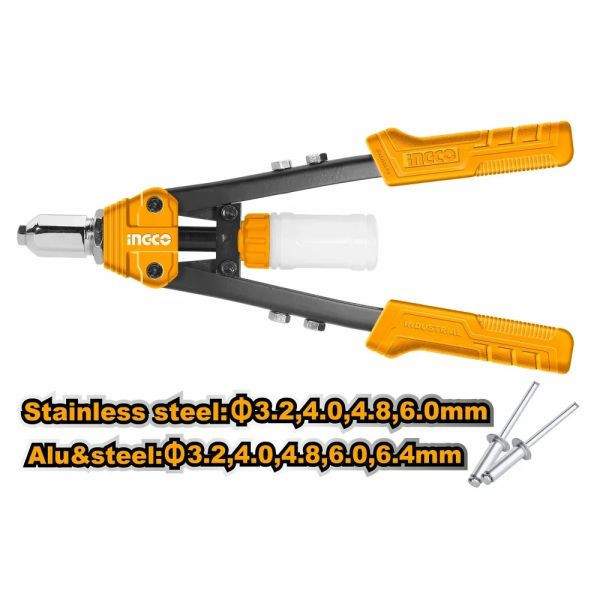 Размер: 13" Применимо к нержавеющей стали, алюминию и стальным заклепкам Заклепка из нержавеющей стали: φ3,2 мм, 4,0 мм, 4,8 мм, 6,0 мм Алюминиевая и стальная за еще→клепка: φ3,2 мм, 4,0 мм, 4,8 мм, 6,0 мм, 6,4 мм Материал ручного заклепщика: сталь + алюминий Упаковано в цветную коробку