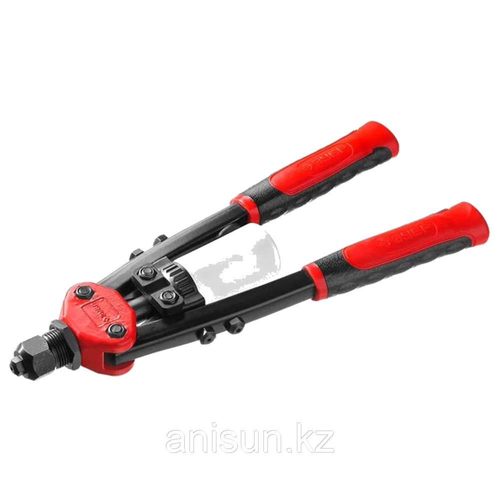 Заклепочник поворотный 0-360°, ЗУБР "ПРО-360 ", для заклёпок d=2,4-4,8 мм - алюминий и сталь, d=2,4-4,08 141Купить!тг. Маркетплейс: Satu.kz Protool.kz - продажа электроинструмента, ручные ст Доставка: по Казахстану ПожаловатьсяЗаклепочник поворотный 0-360°, ЗУБР "ПРО-360 ", для заклёпок d=2,4-4,8 мм - алюминий и сталь, d=2,4-4,0 - нерж сталь, литой корпус Линейка профессиональных заклепочников ЗУБР. Усиленная надежная конст еще→рукция и высокопрочные материалы увеличивают ресурс инструмента, позволяя работать со всеми видами заклепок, в том числе из нержавеющей стали. Усиленный корпус, изготовленный методом литья,