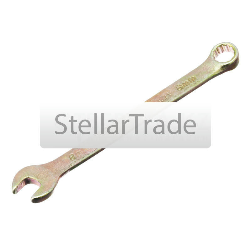 Ключ гаечный комбинированный, 8 мм, СИБРТЕХ 14974450Купить!тг.Stellartrade.kzДоставка: из АлматыПожаловатьсяКомбинированный ключ Сибртех 14974, покрытый желтым цинком, предназначен для слесарно-монтажных работ с резьбовыми соединениями размером 8 мм. Наличие рожкового и кольцевого зева делает ключ универсал еще→ьным. Накидная головка с 12-гранным профилем надежно удерживает крепеж, уменьшая риск его деформации. Ключ будет полезен при проведении строительных и ремонтных работ, пригодится для