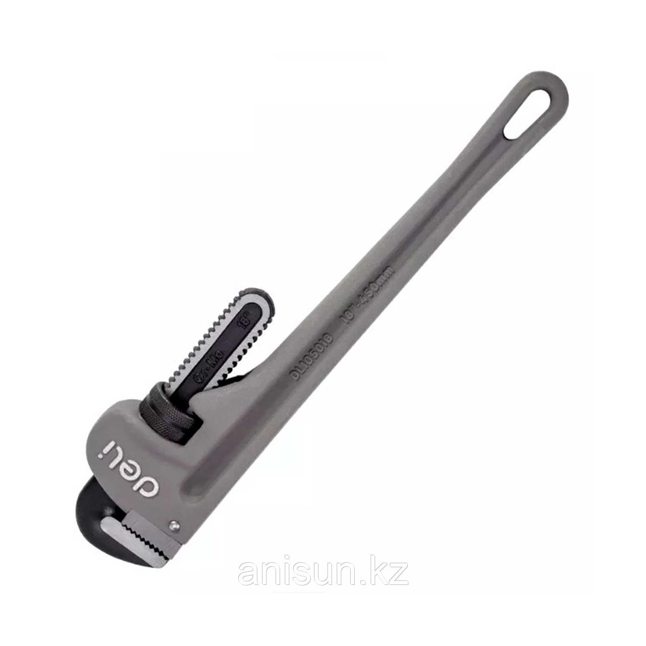 DELI, EDL105018, ТРУБНЫЙ КЛЮЧ ЧЕРНЫЙ, 18"/450ММ15 322Купить!тг. Маркетплейс: Satu.kz Ani-Sun Trade Доставка: по Казахстану ПожаловатьсяТрубный ключ Стиллсона облегченный Deli DL105018 405мм (ширина захвата 60мм, алюминиевый сплав + CrMo) используется для вращения или фиксации труб и других деталей произвольной формы.Рукоять ключа изг еще→отовлена из высокопрочного алюминиевого сплава, что обеспечивает надежность и долговечность при малом весе (на 25% легче стандартных трубных ключей*), а губки сделаны из хромомолибденового