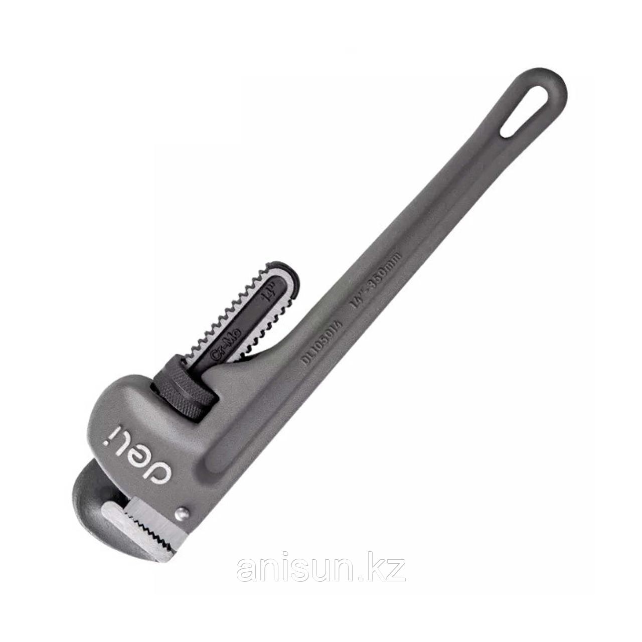 DELI, EDL105014, ТРУБНЫЙ КЛЮЧ ЧЕРНЫЙ, 14"/350ММ9 677Купить!тг. Маркетплейс: Satu.kz Ani-Sun Trade Доставка: по Казахстану ПожаловатьсяТрубный ключ Стиллсона облегченный Deli DL105014 320мм (ширина захвата 48мм, алюминиевый сплав + CrMo) используется для вращения или фиксации труб и других деталей произвольной формы.Рукоять ключа изг еще→отовлена из высокопрочного алюминиевого сплава, что обеспечивает надежность и долговечность при малом весе (на 25% легче стандартных трубных ключей*), а губки сделаны из хромомолибденового