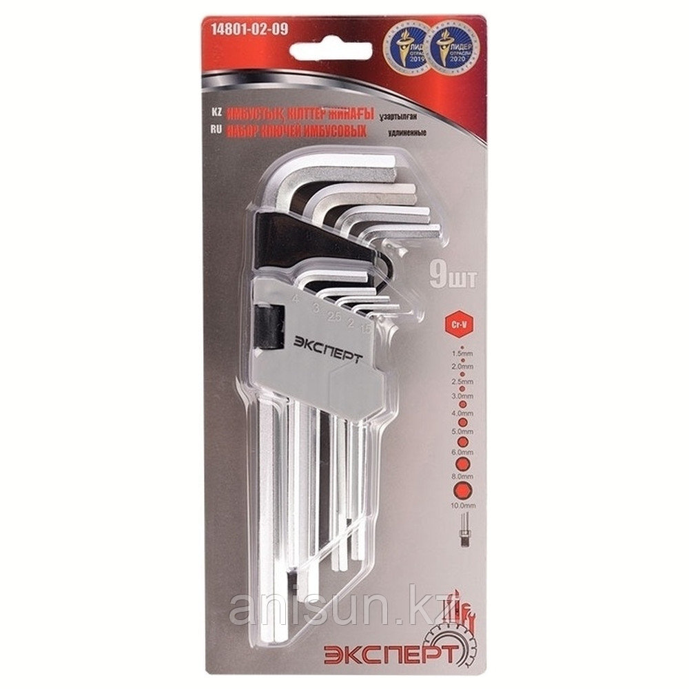 Набор имбусовых ключей ЭКСПЕРТ 1.5-10мм 9шт. 14801-01-092 051Купить!тг. Маркетплейс: Satu.kz Ani-Sun Trade Доставка: по Казахстану ПожаловатьсяНабор имбусовых ключей ЭКСПЕРТ 1.5-10мм 9шт. 14801-01-09 - для работы с крепежом. Инструменты изготовлены из высокопрочной хромованадиевой стали. Ключи устойчивы к износу, долговечны. Инструменты имею еще→т Г-образную форму и шестигранный профиль HEX, что обеспечивает высокий крутящий момент.Комплектация:Ключи 1.5, 2, 2.5, 3, 4, 5, 6, 8, 10 мм