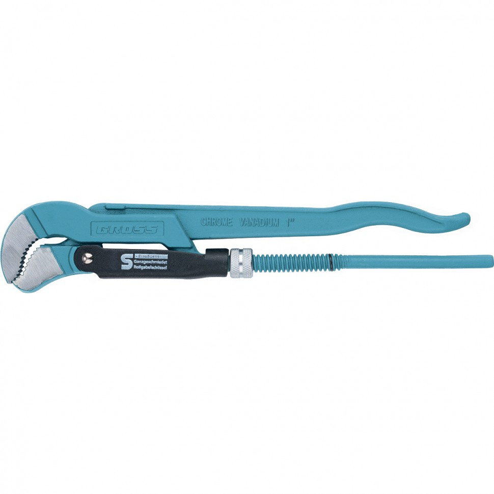 Ключ трубный рычажный 1, №1, цельнокованый, CrV, тип "S" Gross 15611mi6 690Купить!тг.All-tools.kzДоставка: из АлматыПожаловатьсяКлюч трубный рычажный типа S усиленной конструкции, применяется при повышенных нагрузках. Предназначен для захватывания и вращения труб и соединительных частей трубопроводов. Изготовлен из высококачес еще→твенной хромованадиевой стали. Имеет порошковое антикоррозийное покрытие. Губки дополнительно закалены токами высокой частоты до твердости 57–60 HRС. Прогрессивная форма зуба с наклоном против направления вращения обеспечивает самоблокируемый захват деталей. Верхняя ручка имеет выштампованный Т-образный профиль. Регулировочная гайка снабжена стопорным кольцом.