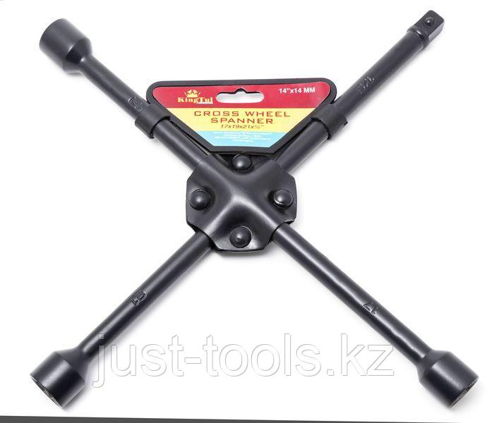 KINGTUL Ключ баллонный крестовой 14" (17,19,21, 1/2") KingTul kraft 10304 KT-251B400 KT-251B4004 300Купить!тг.Just-tools.kzДоставка: из АлматыПожаловатьсяКлюч баллонный крестовой – это один из типов гаечных ключей с торцевым рабочим профилем, которым можно ослабить или затянуть зажимные гайки, фиксирующие автомобильные колеса. Инструмент надёжный и про еще→стой в использовании. Ключ баллонный используется при установке и демонтаже колес автомобилей. Состоит из двух прутьев сваренных в форме креста. На четырех концах ключа размещены торцевые головки размером 17, 19, 21 и 22 мм. также в комплекте переходник на 1/2", для возможности применения любого другого размера вашей колёсной гайки.